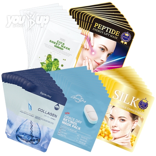 | 内容量 | [レチノール&EGFグレイスパック]1枚×10 [シカスキンセラピーエッセンスパック]1枚×10 [コラーゲンプレミアムモイストパック]1枚×10 [レーザーペプチドエナジーパック]1枚×10 [黄金シルク エンリッチパック]1枚×10 |