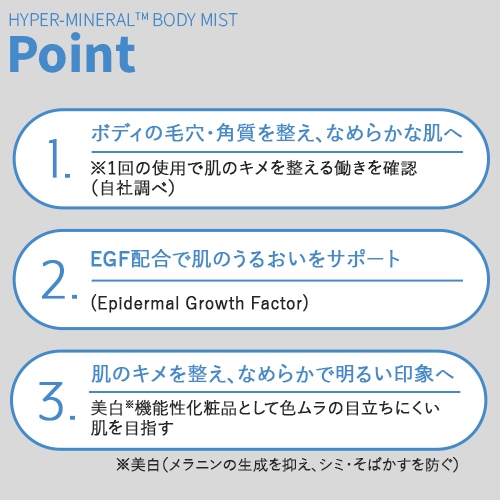 厳選された海洋深海水をベースに、肌に必要なミネラルバランスを整えることで、しっとり健やかな肌へ導きます。シンプルな処方のため、デリケートなお肌の方でも毎日のスキンケアに取り入れやすいミストです。