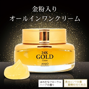 [24Kゴールドオールインワンクリーム] 朝晩の洗顔後、適量(パール2粒分程度)を手に取り、顔全体に馴染ませてください。両手で顔を包み込み、手のひら全体で優しく押さえるようにして肌に浸透させるのがおすすめです。