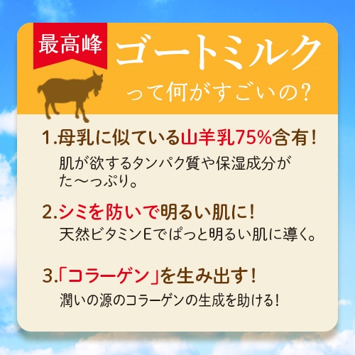 主成分であるヤギ乳エキスは肌を若々しく整えると同時に、肌に潤いを与えます。