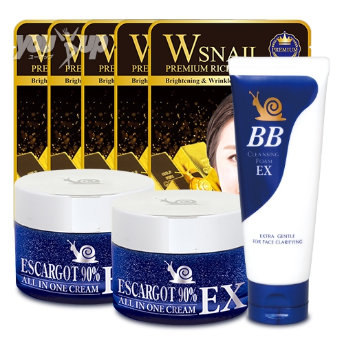 | 内容量 | [極上かたつむりBB洗顔フォーム(EX)]100ml [Wかたつむりプレミアムリッチパック]1枚×5 [かたつむり粘液90%オールインワンクリーム(EX)]50ml×2 |