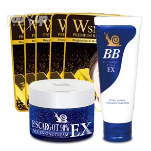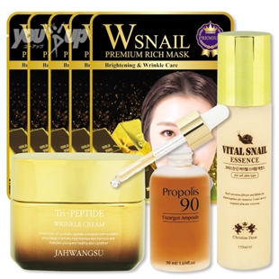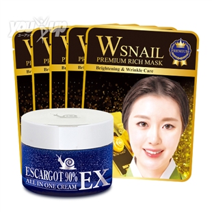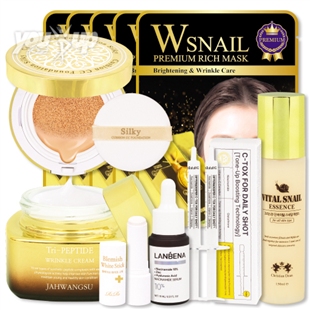 水、グリセリン、エタノール、フェノキシエタノール、カルボマー、TEA、PEG-60水添ヒマシ油、エチルヘキシルグリセリン、トリデセス-10、EDTA-2Na、BG、パンテノール、ベタイン、カタツムリ分泌液、ヒメコウゾエキス、ヒアルロン酸Na、1,2-ヘキサンジオール、金、香料