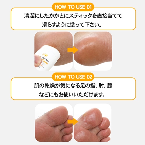 シアバターの豊かな保湿力が、硬くなった皮膚を柔らかくし、乾燥からくるひび割れや荒れを防ぎます。ベタつかず、さらっとした使い心地で、毎日のケアが手軽にできるため、快適な足元をサポートします。また、足元だけでなく、肘や膝にもお使いいただけるマルチなアイテムです。