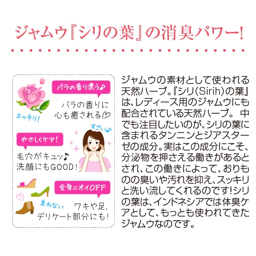 洗うだけで黒ずみやくすみを明るくするのはもちろん、ほのかなバラの香りが漂い、モテ効果もバツグンです。デリケートゾーンのニオイ、ワキや足の臭い、体臭、加齢臭などをサッパリ洗い流し、女性らしいローズの香りがほのかに残ります。