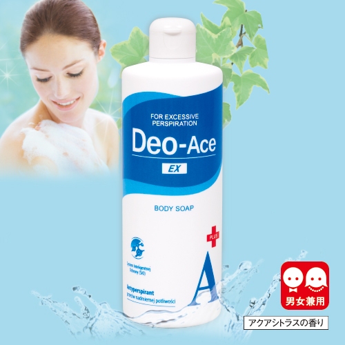 清涼感のあるアクアシトラスの香りが周囲に清潔で爽やか印象を与え、これまでにない泡立ちが、爽快な洗い上がりを実現したデオエースEX(プラス)ボディーソープです。