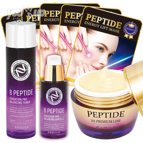 商品の特徴ペプチド配合のオールインワンクリーム・美容液・化粧水・5枚パックのセット