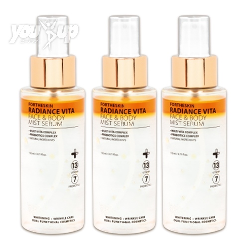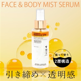 メラニンの生成を抑えるビタミン13種類と肌のバランスを整えるプロバイオティクスが7種類配合されている2層式のミスト化粧水です。